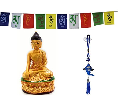 - Package contains: 1 car idol + 1 tibetan flag for car/home + 1 Ganesha evil eye hanging