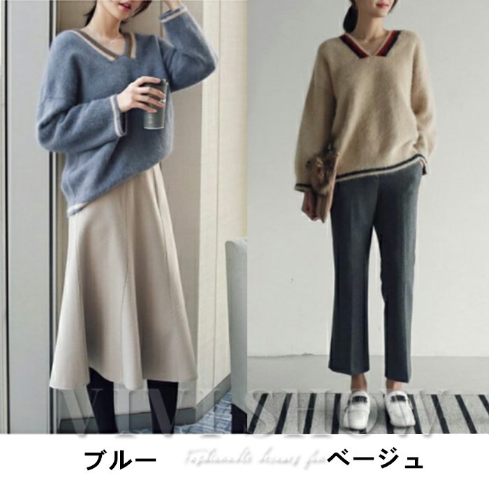 セーター ニット レディース vネックニットトップス かわいいふわふわニット 着痩せ 長袖 秋冬 無地 セーター ロング丈 モヘア 2色 オシャレ エレガント■素材:綿(めん)■カラー:ブルー ベージュ■サイズ:フリーサイズ 着丈:60 バスト:110 肩幅:57 袖丈:44■原産地:中国商品は取り寄せのため、納期は約7-10日前後、お急ぎの方はご了承ください。※交通状況により上記予定日より到着が遅れる場合があります。