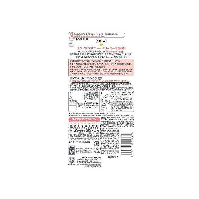 원본상품명: Dove ダヴ クリアリニュ? クリ?ミ? 泡 洗顔料 つめかえ用 140ml