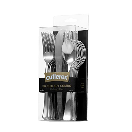 CUTLEREX Heavy Duty Plastic Silverware Cutlery –Silver– Disposable Flatware Set Combo Pack 36 Ct. 12 Knives 12 Spoons 12 Forks