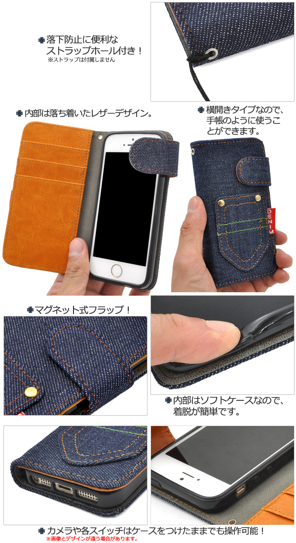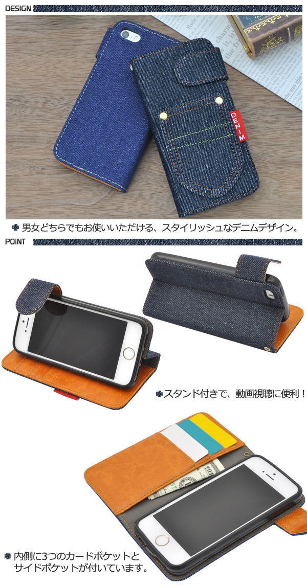デニムデザインのiPhone 5/5s/SE用スタンドケースポーチ。
