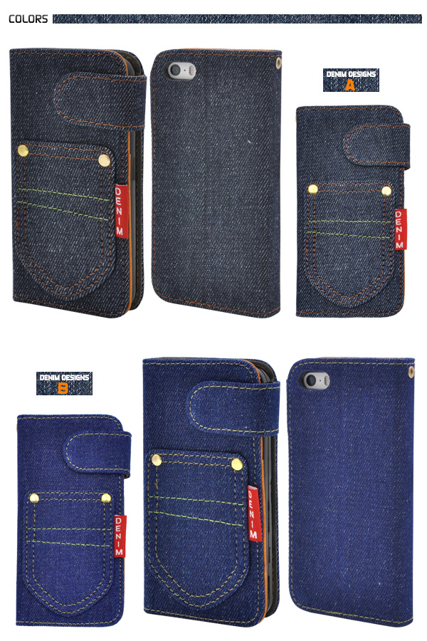 iPhone 5/iPhone 5s/iPhone SE用デニムデザインスタンドケースポーチ(ジーンズデザイン)