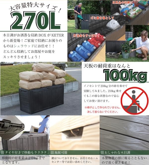 | 仕様 | 容量:270L/20kgまで 天板耐荷重:100kg 組立簡単(組立時間約10分) |