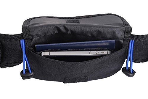 The pouch is designed to hold all sizes of phone from a mini iPod to iPhone 6. You also could carry your home or car keys, credit cards and even cash without a hassle in this pocket. The front flap with a Velcro closure will protect them for you.