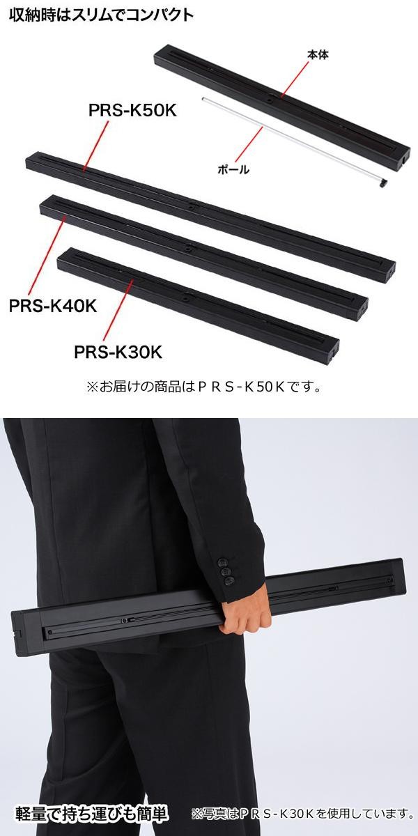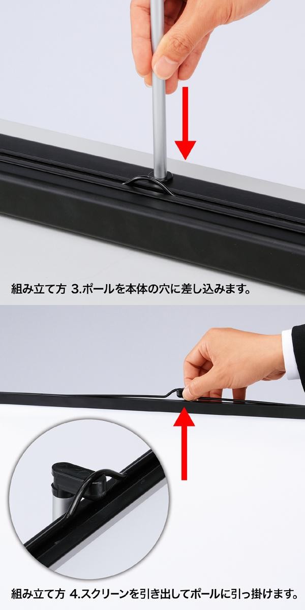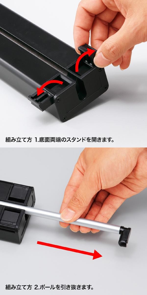 | 使うときだけ簡単に設置できる、机上式プロジェクタースクリーンです。収納時はスリムでコンパクトなため、会議テーブルの上に置いてあっても邪魔になりません。軽量で持ち運びも簡単です。 |