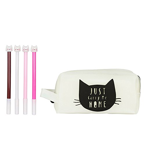 MONSTERZ Silicone Kawaii White Cat Large Pencil Bag Case + 4 MOE Cat Gel ink pens