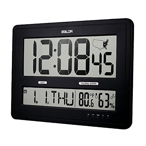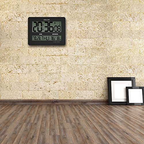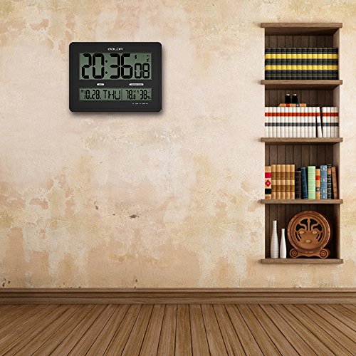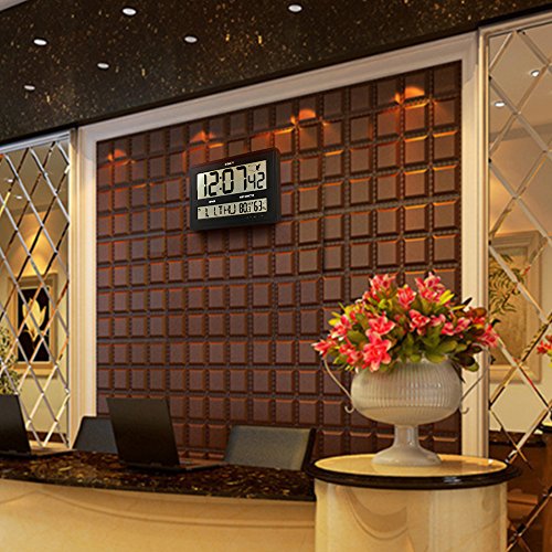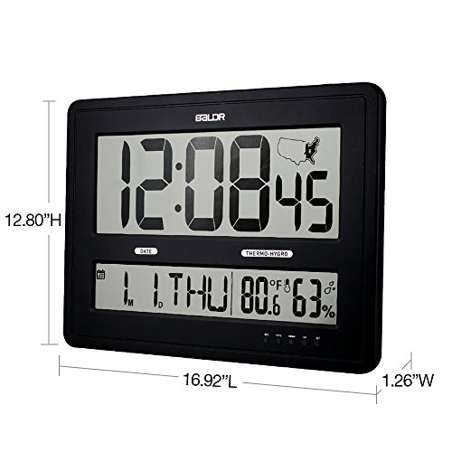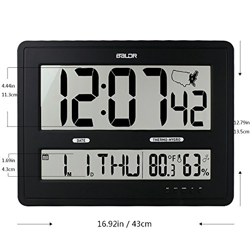 Description: Digital Style with self-setting time attracts for your convenience and enjoyment. Time display self-sets to the Universal Time automatically, keeping you right on time! On/off optional daylight saving time updates. It features perpetual calendar that displays weekday/weeks and also monitors your indoor temperature and humidity. Big clock for wall hanging only. (For users outside USA, the WWVB time can not be received. Please set manual time.)