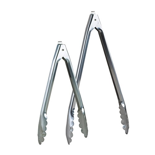 Studio : HIC Harold Import Co. Publisher : HIC Harold Import Co. Binding : Kitchen Product Description HIC's Stainless Steel Spring Locking Tongs are hardworking kitchen utensils that are perfect for cooking, serving and plating foods at every dining occasion. Their scalloped grips securely hold foods and drain liquids and cooking oils for mess-free serving. The set includes 1 each 10-inch and 12-inch tong so the right tool is always handy for the task. Lift and turn foods with confidence while cooking and serving without the drippy mess. Perfect for cooking in metal pots and pans and securely gripping denser foods, like steaks and chops and cooking meat and poultry, fish, even veggies and stir-fries, tossing salad, and so much more. Sturdy and durable, their spring action keeps them open and ready to use, while a quick pull of the locking tab that helps keep them closed for easy, compact storage. These must-haves of kitchen essentials and cooking tools work hard for cooking in the kitchen, and perform beautifully at breakfast, brunch, holiday meals, and party buffets, at the barbecue or in outdoor kitchens, as both BBQ tongs and serving tongs or for outdoor entertaining. Made from stainless steel, HIC's Stainless Steel Spring Locking Tongs are sturdy and durable, and won't react with foods. Hand wash in warm, soapy water. Set includes 1 each 10-inch and 12-inch tong. 0