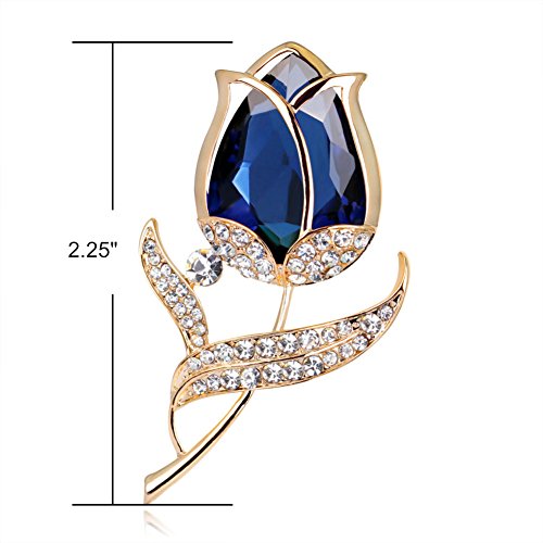 Romantic Rose Flower Gold Plated Crystal Rhinestone Charms Brooch Pin for Women (Blue)