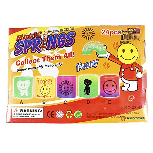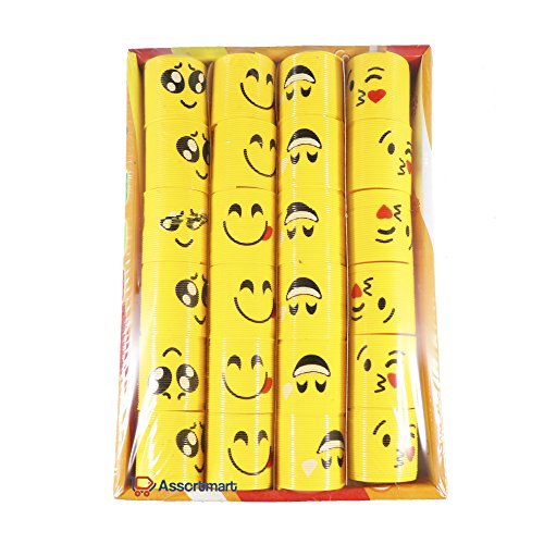 Studio : Assortmart Publisher : Assortmart Binding : Toy Product Description This Emoji spring toy stretches like an accordion, bounces and walks down steps one end at a time while making that classic Slinky sound! Perfect party favors, these kid's toys are sure to be a hit whatever the occasion. Also cheap kids' toys to pass out at Halloween parties or at school events, these plastic springs are perfect outdoor toys for kids. Watch your young ones ease this simple yet entertaining toy down the stairs or bounce and swing them around. Entertainment for hours! 0