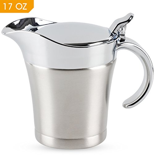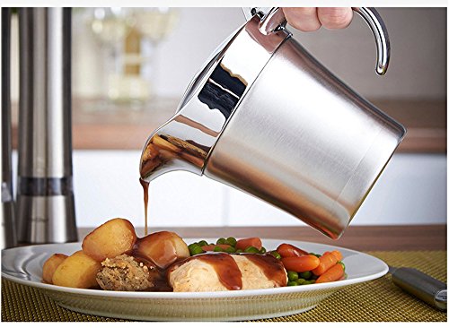 Studio : Momugs Publisher : Momugs Product Description Description: - Double walled insulated thermal gravy boat serving jug with lid. - Keeps gravy sauces and custard steaming hot at the table. - Also keeps liquids cold, perfect for milk, cream and summer desserts. - Easy to use thumb operated lid - smooth pouring non-drip spout. - Large capacity about 500ml. Specification: - Material: Stainless Steel - Color: Silver - Capacity: 500ml - Size(LxWxH): Approx. 115x160x130mm/4.53x6.30x5.12inch - Inner Size: Approx. 90x90mm/3.54x3.54inch - Base Diameter: 84mm Package Includes: 1 piece Thermal Gravy Boat Note: Pls alow an error of 1-3mm due to the difference of manual measurement. 0