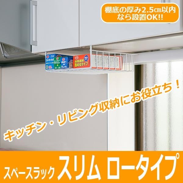 | 棚の下のデッドスペースがあっという間に便利スペースに早変わり!棚の下に引掛けるだけ。小物類などがきれいに収納できます。 |