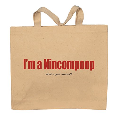 Binding : Apparel Product Description I'm A Nincompoop what's your excuse? . A Fun way to show how you feel with a totebag. The Design/Saying is printed on the front of this canvas tote bag. We use the newest best technology to print the design with great inks that are cured into the product. This new high tech way of producing garments is very fade resistant. WE DO NOT USE TRANSFERS. It is great, since you dont have that thick transfer feeling. The feel is very smooth and comfortable. 0