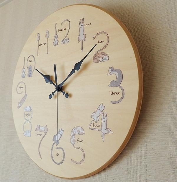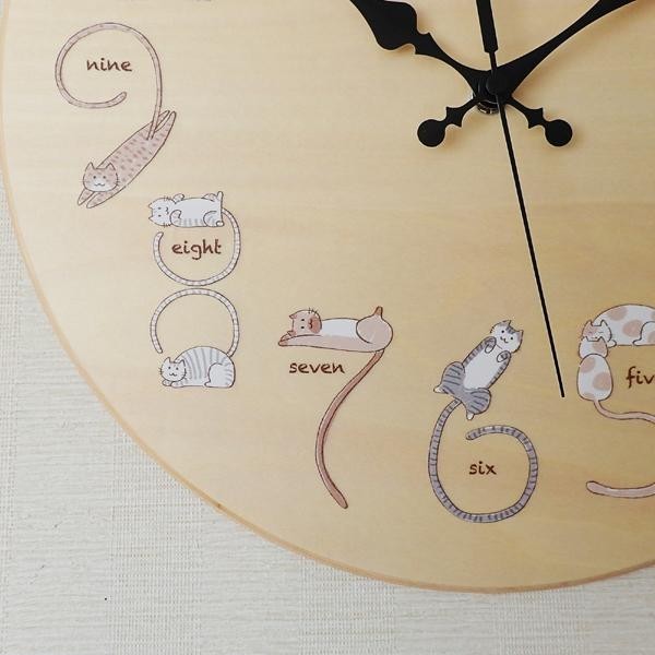 | 丸い形と温かみのある素材、そして文字盤の猫がほっこり可愛らしい壁掛け時計です。専用のBOXに入れてお届け致しますので、自分用はもちろんプレゼントにもピッタリです♪ |