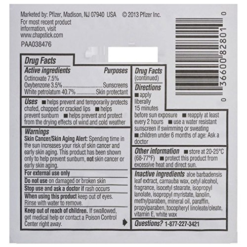 Chap Stick Moisturizer 0.15 oz. Never let your lips go naked. Wear every day for the moisture, softness and protection your lips need to feel healthy and comfortable all day long.Feature