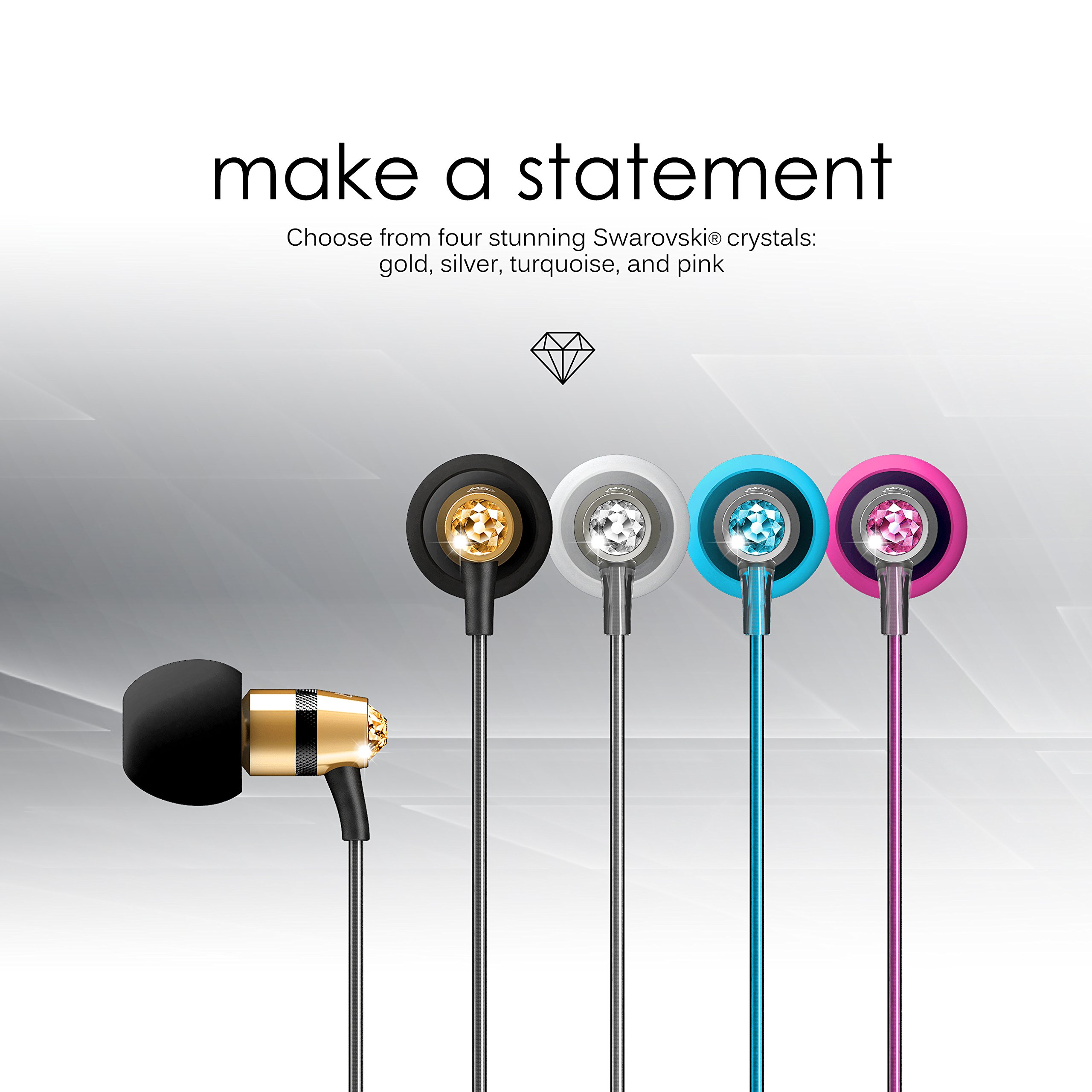 Made of genuine Swarovski crystals, CRYSTAL in-ear headphones are elegant and stylish.