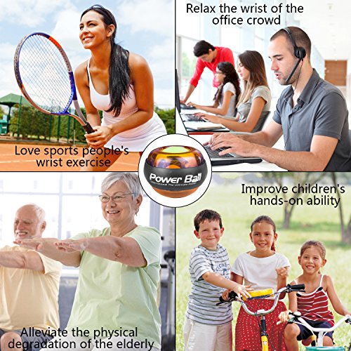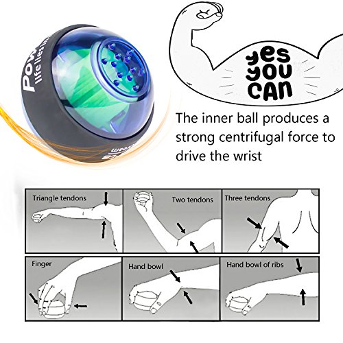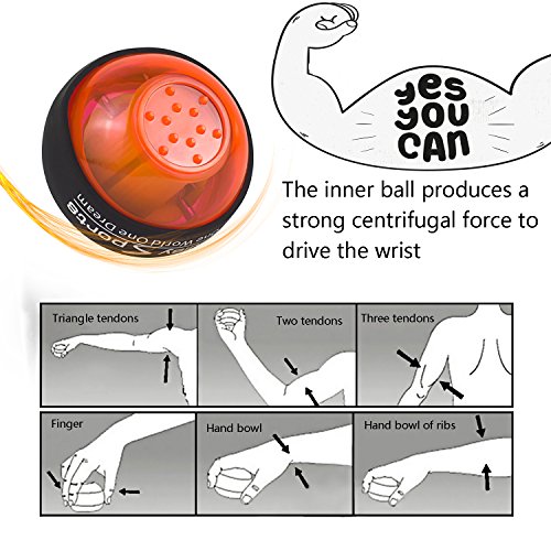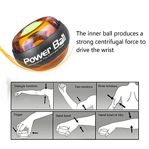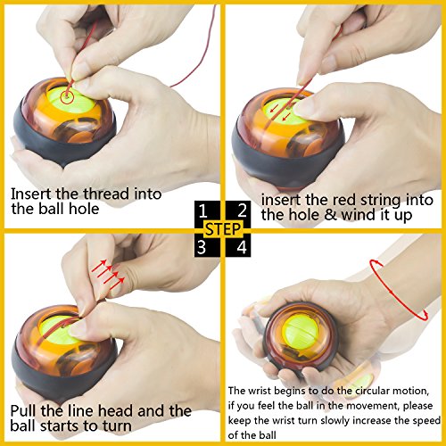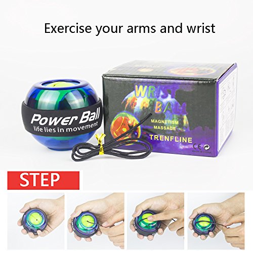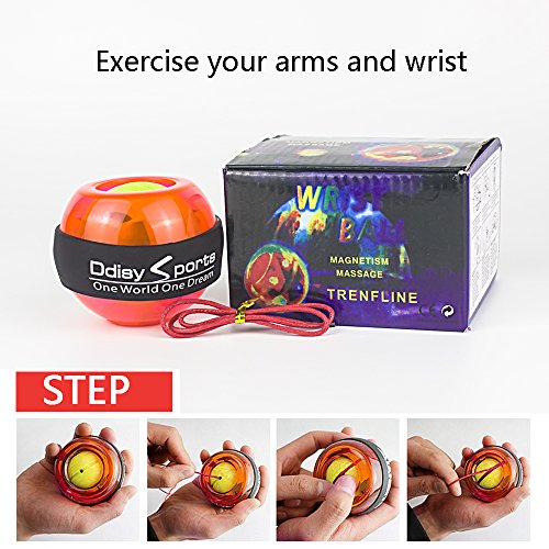 Studio : Wisdoman Publisher : Wisdoman Binding : Misc. Product Description Wisdoman Wrist Ball Gyroscope Forearm Exerciser The use of gyroscopes, from wrist spin to produce power, without batteries and plug rotation, the faster you generate the stronger the momentum. Rotational speed per minute up to 12,000 (RPM) turn over. Instructions 1. To start, hold the ball in your hand with the exposed gyroscope facing left, insert the included red string into the hole, wind it up, and pull straight down, fast enough to have the gyroscope turn the LED on. 2. Then turn your hand facing down, and slowly start to rotate. The gyroscope will start to "bite" and you will feel like it is scratching against the inside of the wrist ball. 3. To keep rotating your wrist and the gyroscope will spin faster and develop a higher pitch sound. Once you have it spinning fast enough, you can stop your hand and feel it oscillating right in your palm. Specificacion Function: Muscle Relex Apparatus Material: Pvc Size: 2.83(diameter) * 2.36 (high) Weight: 0.62 pound Features 1. Enhanced grip endurance, wrist arm and other best weapon, and can promote blood circulation, strengthen the wrist ligaments reduce injuries. 2. It is a very interesting sensation and definitely makes your forearm sore and gets the blood going. 3. So, on your 5 minute break take it out and give it a go. You will be impressed on what this device can do for you. It works on your grip, forearm, and blood flow you will be amazed. 4. The world's smallest, most kinetic energy a ball, all ages, and is not restricted by space activities at home watching television outing ,climbing car anywhere and can be used.