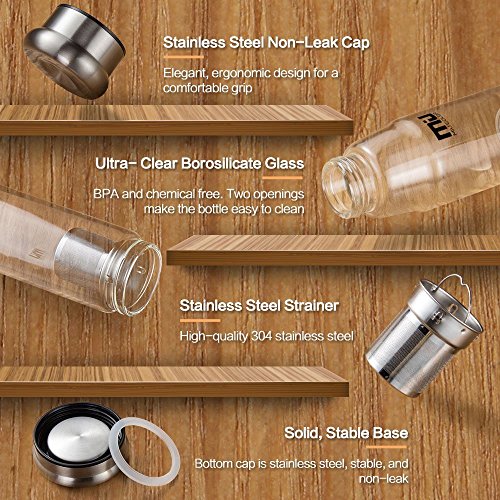 New Design: Our “Champion” series signature glass bottle has been upgraded to include a tea/fruit infuser