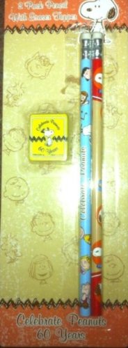 Studio : Fine Line Publisher : Fine Line Binding : Toy Product Description Peanuts Set includes 2 full-size Pencils and a square yellow Eraser Topper. Red pencil shows Snoopy thru each decade and the Blue pictures various members of the Peanuts Gang: Charlie Brown, Lucy, Sally, Linus, Snoopy, Woodstock. 0