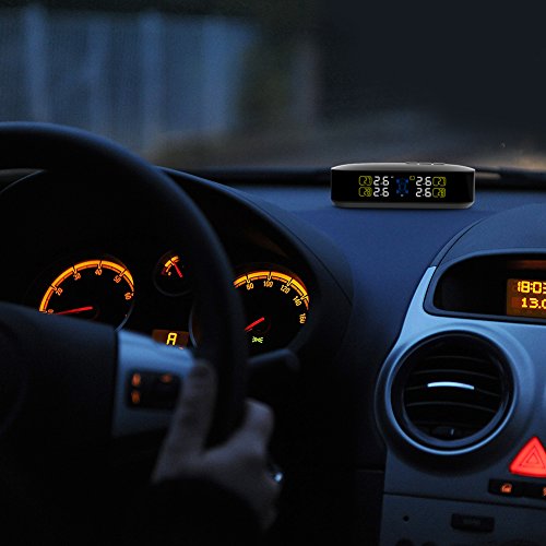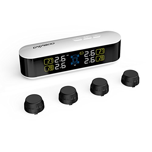 CACAGOO TPMS Tire Pressure Monitoring System with Real-time Warning, LCD Display, 4 External Tire Pressure Sensors, Psi/Bar, °C / °F Units Selection