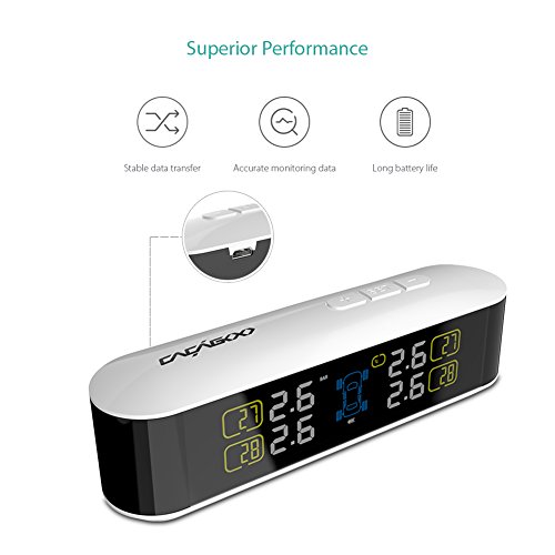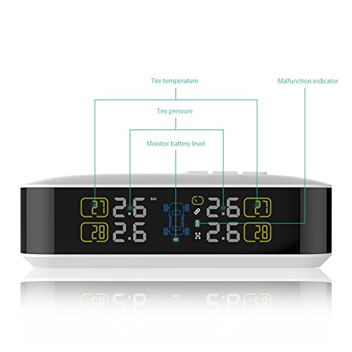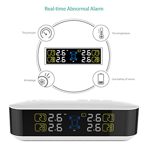 [Real-time Abnormal Alarm] Delivers both visual and audible warnings when the tire pressure, temperature or air leakage goes beyond the alarm value or when the sensor battery is low. Provide advanced alerts for potential dangers to ensure safe driving.