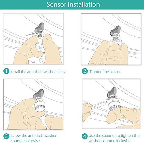 [Wireless Transmission] The IP54 dust-proof, waterproof sensor will transmit data automatically when the vehicle is in motion. The monitor will enter the sleeping mode if no vibration in 5 minutes and intelligently activate with a slight vibration.