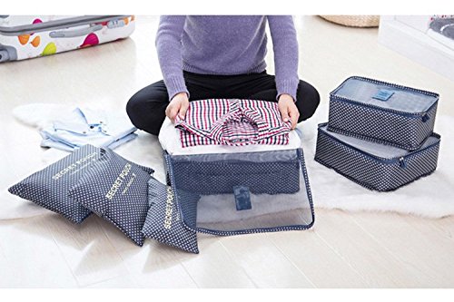-. Feature : Including:6pcs packing cubes and a laundry bag / Feature:three boxy organizers have handles for carry.washable, prevent bacterial growth, smell reduction. Not Just for Clothes:Also make the perfect travel tote for makeup and beauty products, cosmetic bottles, toiletry kits, pantyhose, delicates, small purses, and even camera accessories / Made of polyester and soft nylon mesh. Mesh top panel for easy identification of contents and ventilation. They are light weight and hold a lot of items / Keeps clothes and small items neat and safe in one bag. It's very convenient and much easier to pack anything from clothes to souvenirs. / If you have any question,please feel free to contact us,we will try our best to make you satisfied,thank you~