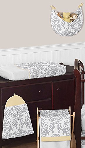 -. Title : Yellow, Gray and White Avery Damask P.R.Int Girl or Boy Baby Bedding Collection Unisex 11pc Crib Set without bumper