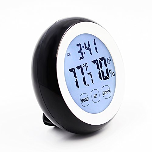 -. Feature : Multi-function indoor digital thermometer:3 buttons (mode, up, down) on the clock surface / Exquisite design thermometer humidity sensors.Product dimensions 3.12 x 3.12 inch. / LCD sensitive touch screen: with 8 seconds white back light you can watch the time in dark for the bedroom, warehouse, cellar, etc. / Round shape and the smooth surface.With magnet, hook hole and stand on the back side / Fashion useful design: work on 2 batteries, you can change or take the battery away, flexible placement;