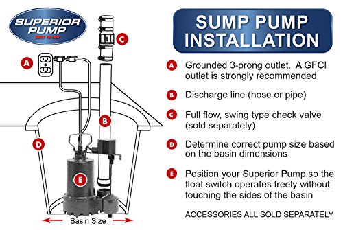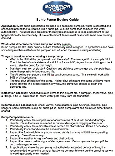 Superior Pump 92511 1/2 HP Cast Iron Sump Pump with Vertical Float Switch