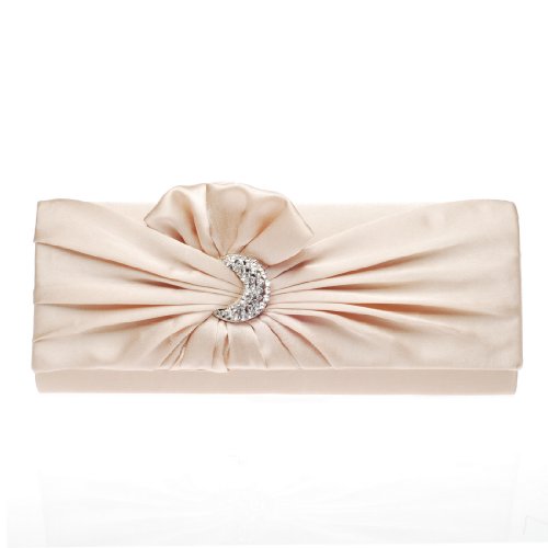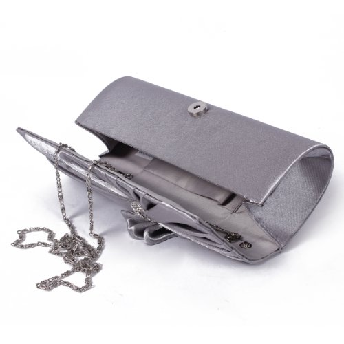 -. Feature : Edle Satin Clutch mit Faltenwurf und dezentem Strass Besatz auf der Front / Verschluss:Magnetverschluss / Fächer:geräumiges Innenfach,handyfach / Abnehmbarer lange Ketten:120cm / Abmessungen:ca.27x10x5cm