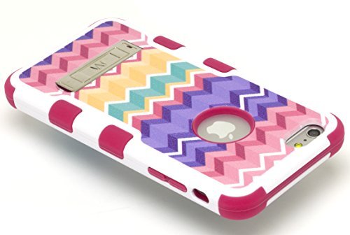 iPhone 6 Plus Case, Bastex Heavy Duty Hybrid Protective Kickstand Case - Soft Hot Pink Silicone Cover with Multicolored Chevron Design Kickstand Hard Case for Apple iPhone 6, 5.5 Plus