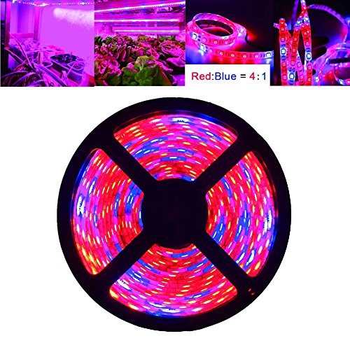 LED Strip Lights, OUEVA 16.4ft/5M Plant Light Strip SMD 5050 Waterproof Grow Light Full Spectrum Rope lights for Aquarium Greenhouse Hydroponic Plant, Garden Flowers Veg Grow Light DC 12V (4:1)