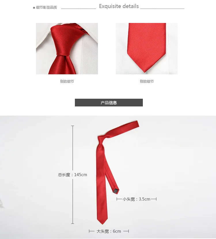 | [해외]솔리드 슬림 넥타이 레드 목 스키니 넥타이 6 센치메터 폭 |