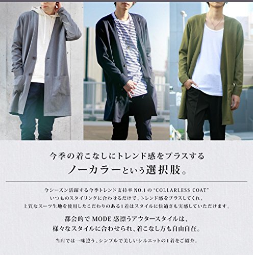 -. Title : (モノマート) MONO-MART スーツ地 ノーカラー ロング コート ジャケット ストレッチ TR メンズ