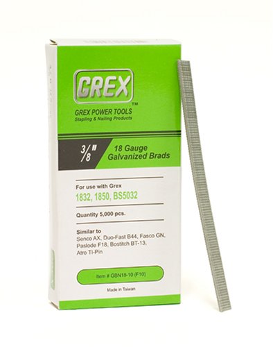 GREX GBN18-10 18 Gauge 3/8-Inch Length Galvanized Brad Nails (5,000 per box)