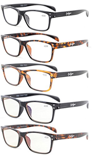 EYEKEPPER READING GLASSES-5-pair at 1 low price, Each set is just for one strength, these are not mixed strength. Acrylic Lens and Optically Correct,Spring-hinged temples, help glasses fit your face.Amber tinted lens for computer.