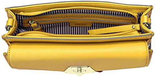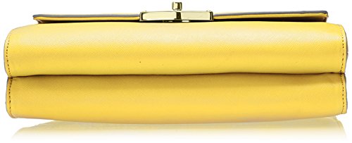 - Feature : One interior zip pocket, one other interior pocket, and one exterior pocket / Crosshatch texture handbag featuring contrast piping and envelope flap with gold-tone turn-lock clasp / Chain-and-leather cross-body strap