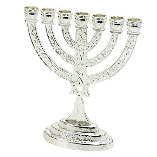 Grafted in Messianic silver plated holy land Judaica candle holder Israel 5" Menorah from Jerusalem
