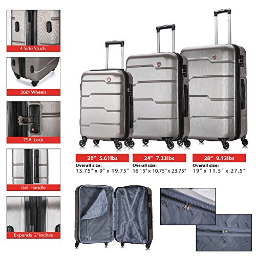 Product Description The DUKAP Rodez collection is made of lightweight PC/ABS engineered material with brushed finish. The hard-flex construction offers maximum strength, durability and a water/scratch resistant finish. Featuring an amazing style with 4 multi-directional 360° wheels for effortless mobility , TSA approved combination lock, 2' expandable for additional extra space, full interior fabric lining with a zippered compartment on one side, snap-on straps on the opposite side for easy packing and one inside pocket for your convenience, push button locking internal retractable trolley system, top and side ergonomic GEL handles and smooth gliding over sized zippers. This product can be purchased in different colors. 0