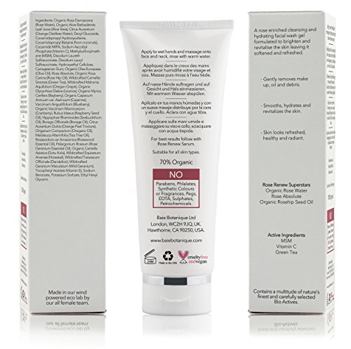 -. Feature : NATURAL & ORGANIC SOLUTION FOR THE BEST ANTI AGING FACE WASH - Innovative, Botanical, Skincare made from the finest Natural and Organic Ingredients. 100% plant and mineral derived. Delight in Natural Rose Fragrances derived from key essential oils. / PURE PLANT BASED SKINCARE - delicately formulated with the latest groundbreaking technology. At Baie Botanique we aim to serve our customers as well as our planet with the most environmentally friendly manufacturing processes available today. / FACE CLEANSER WITH ALL NATURAL EXTRACTS - VITAMIN C gives potent antioxidant protection, shielding skin from damaging free radicals while boosting healthy collagen production, MSM has a softening effect and Green Tea helps to smooth the complexion. / CRUELTY FREE CLEAN SKINCARE - Our face wash is vegan. None of our products are ever tested on animals. Baie Botanique products do not contain potential irritants including Parabens, Phlalates, Propylene Glycol, Synthetic Colours or Fragrances, PEGS, EDTA, Sulphates, Pertochemicals. / 30 DAY SATISFACTION GUARANTEE - Giving you the confidence to try something new. If at any time during the first 30 days of use you are not completely satisfied with your purchase, feel free to return it for a full and prompt refund.