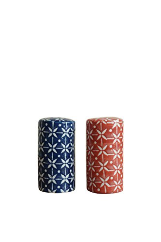Creative Co-Op DA5102 Stoneware Hand Stamped Salt & Pepper, Blue & Red, Multicolor