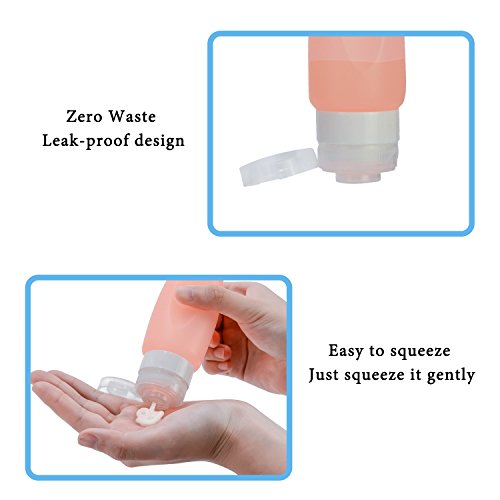 - LEAKPROOF DESIGN-- Travel bottle cap is fitted with 3 leak-proof layers and silicone air valve in the lid keeps fluid leaking out. So it can protect your luggage from dripping and spilling.
