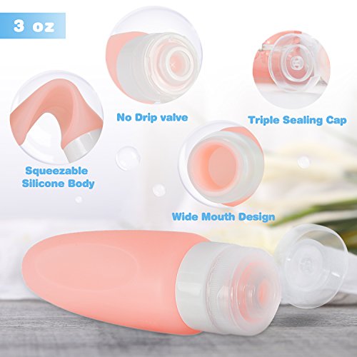 - TSA APPROVED AND WIDE MOUTH-- The 89ml (3fl/oz) travel bottles set meet TSA approved standards for liquid, allowed to carry-on to airplane, a big mouth makes the travel bottle easy to fill and clean.