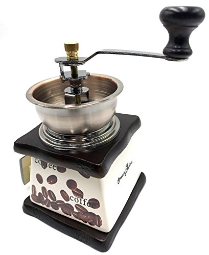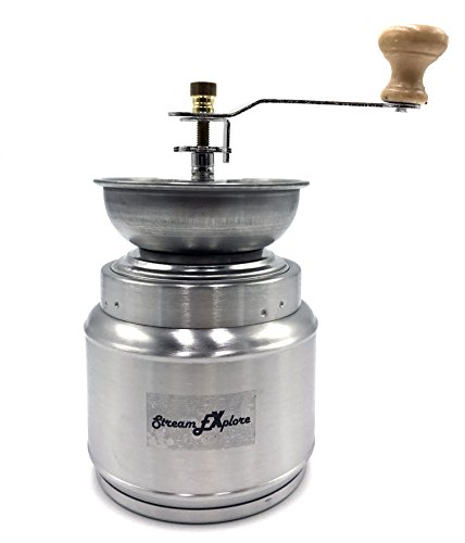 StreamEXplore Manual Coffee Grinder Hand Coffee Mill Burr Coffee Grinder with Ceramic Hand Crank. This coffee grinder / spice grinder has a traditional vintage look. It is made from solid beech wood, rather than pine, which makes it stronger and more durable, ideal for daily use in the home. This grinder is fairly small which makes it ideal for households of 1-4 people. Manual grinders do require a bit of physical effort, after all they are manual, but once the grinder had been used a few times it does become easier to use as the residue from the ground coffee beans helps to 'oil' the burr. It is also worth remembering that the finer the grind the more grinding required. As such, it's important to make sure the grinder is setup correctly so you get the best out of this item. The classic lines of this coffee grinder make it attractive and the ceramic burr makes it a durable and efficient grinder. This is the best of old world style and new world technology!Feature