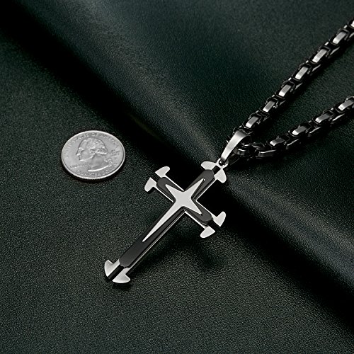 -. Title : Vcmart Stainless Steel Cross Pendant Necklace Mens Boys Chain 5mm Byzantine Chain 22 24 26"