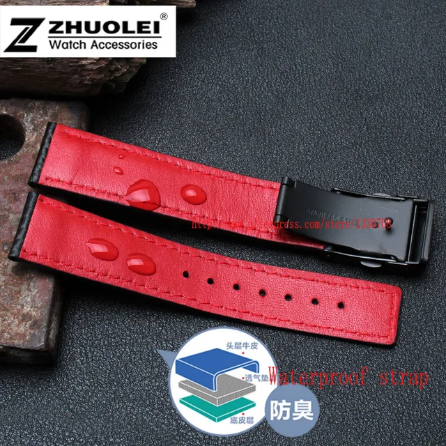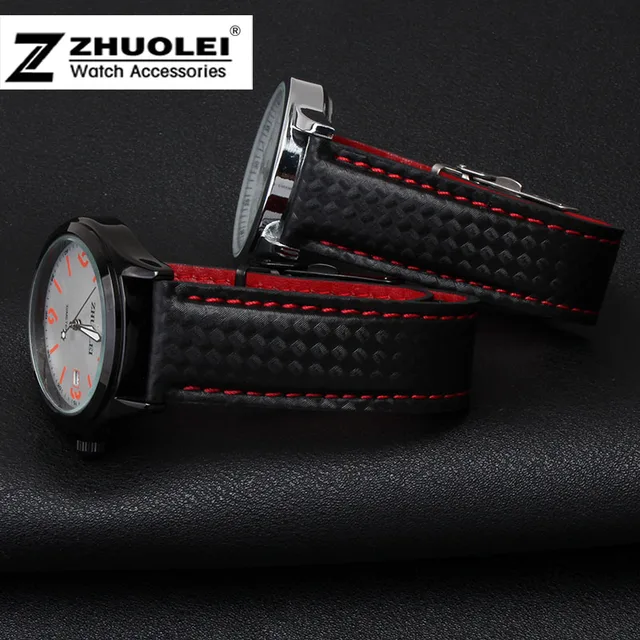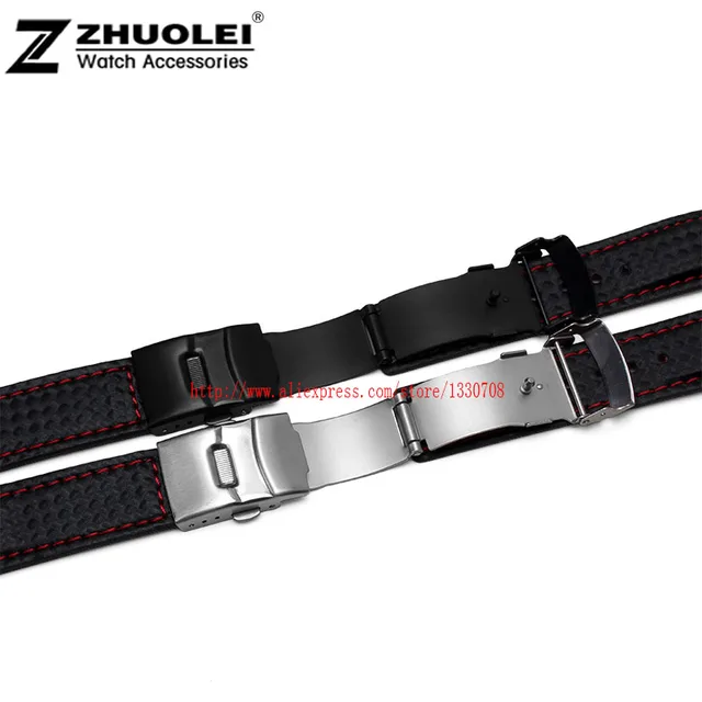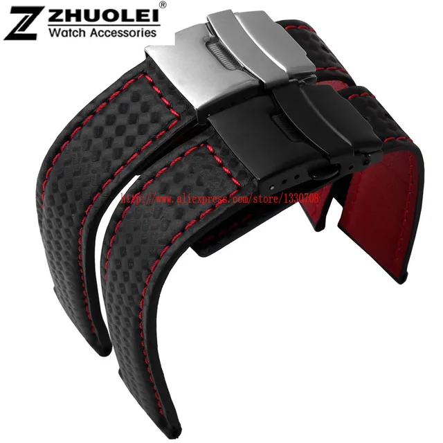 | [해외] 새로운 도착 블랙 레드 스티치 탄소 섬유 라인 손목 이중 보험 접이식 버클 20 미리메터 22 미리메터 시계 스트랩 |