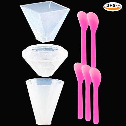 - Package included 1PCS diamond resin molds & 2 PCS pyramid resin epoxy mold (triangle & cone shapes), come with 5 pcs useful glue mixing spoons