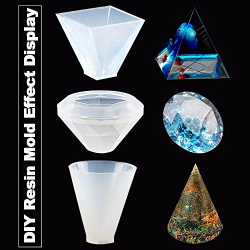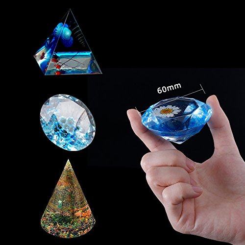 - Size: Diamond resin mold, approx 60 mm in diameter, 35 mm in height; triangle pyramid resin mold,approx 50 mm in diameter, 50mm in height; cone pyramid resin mold, approx 50 mm in diameter, 60 mm in height