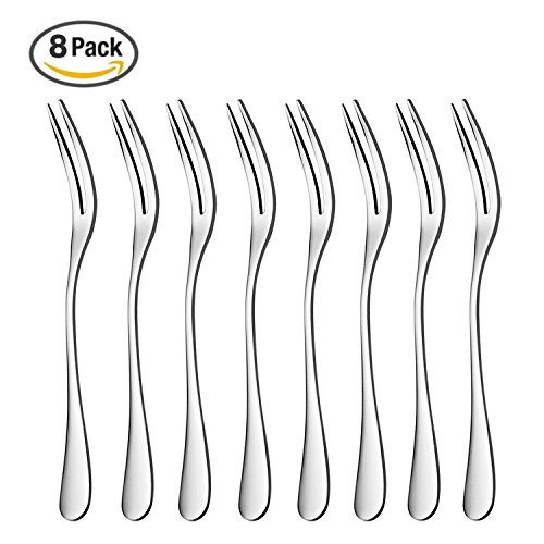 Fruit Forks, Salome Idea 8-piece Stainless Steel Two Prong Forks Bistro Cocktail Forks Tasting Appetizer Forks Set Mini Cake Forks (Fruit Fork-8pc)